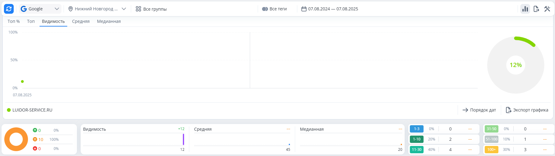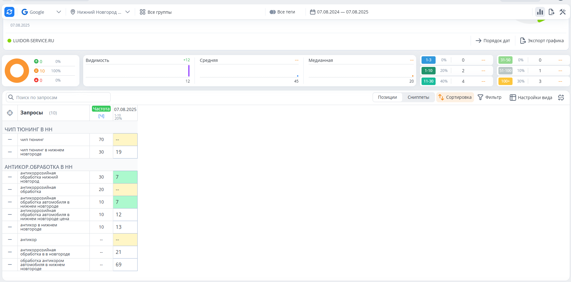 Проверка позиций в ТОП-10 Гугл