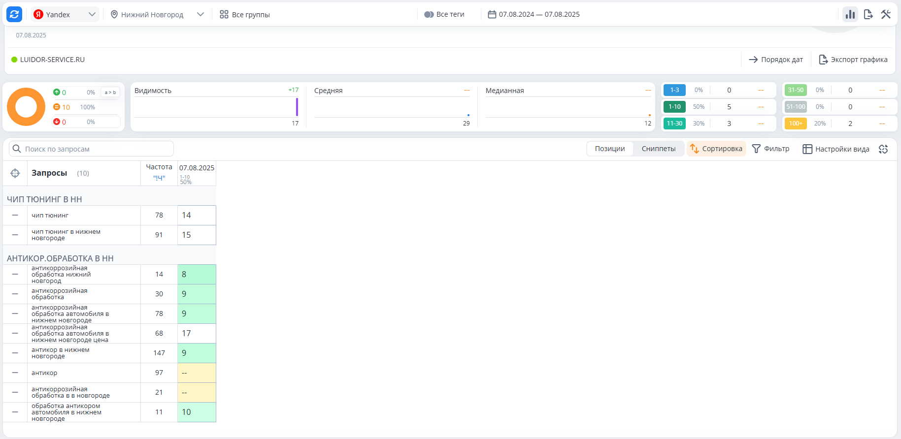 Проверка позиций в ТОП-10 Яндекс
